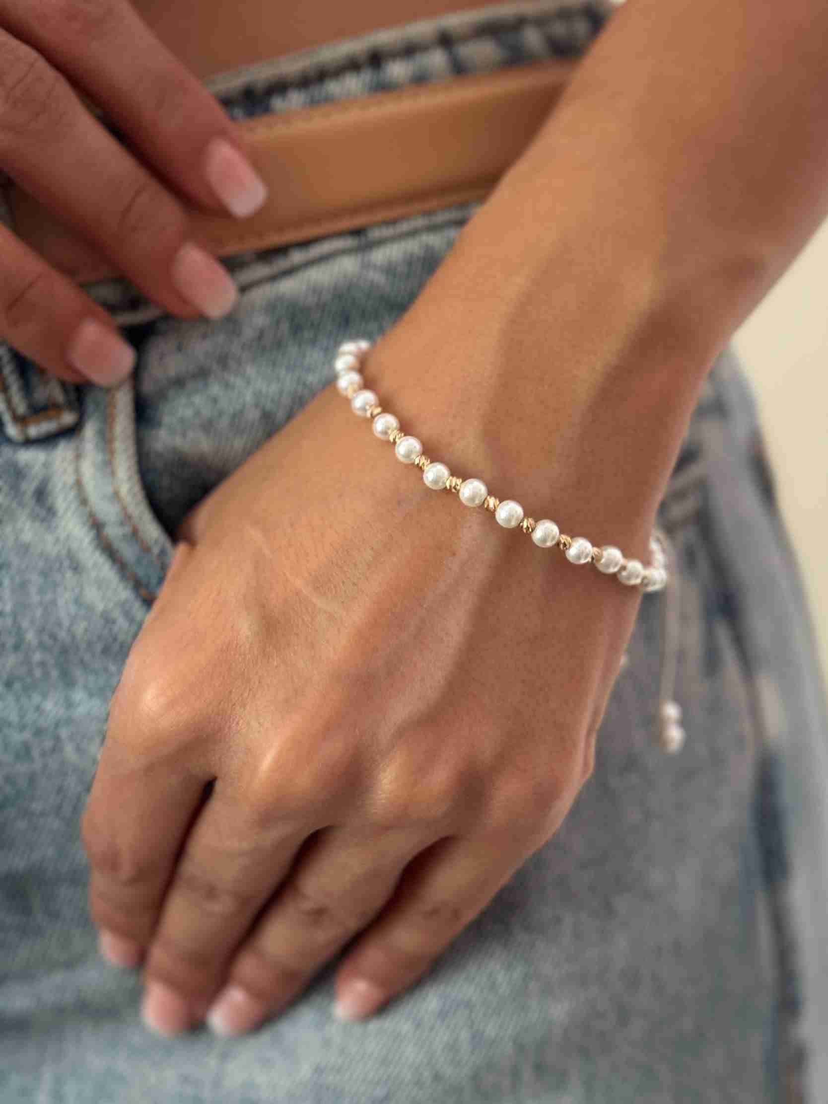 دستبند بند نخی مرواریدی با گوی البرنادو
