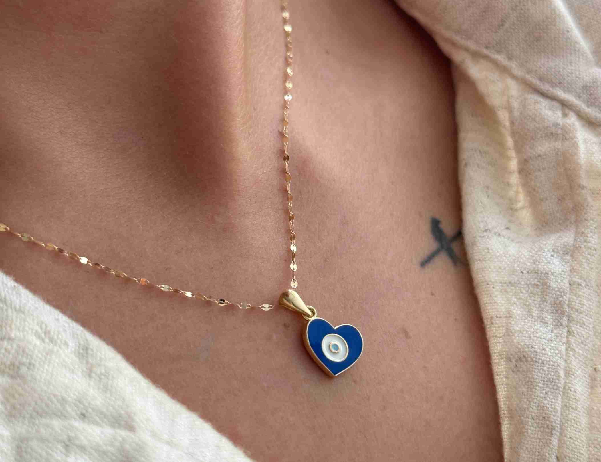 پلاک طلای قلب با مینا کاری چشم نظر، ترکیبی از نماد عشق و انرژی محافظتی که جلوه ای خاص و معنادار به استایل شما می بخشد. طراحی قلب، نشانه ای از محبت و احساسات عمیق است که در کنار چشم نظر، نمادی از محافظت در برابر انرژی های منفی، هارمونی زیبایی ایجاد کرده است. ترکیب درخشش طلا با رنگ های جذاب مینا کاری، این پلاک را به گزینه ای منحصر به فرد برای افرادی تبدیل می کند که به طراحی های خاص و مدرن و در عین حال ساده علاقه دارند. انتخابی ایده آل برای استفاده روزمره یا هدیه ای پرمعنا و ارزشمند.