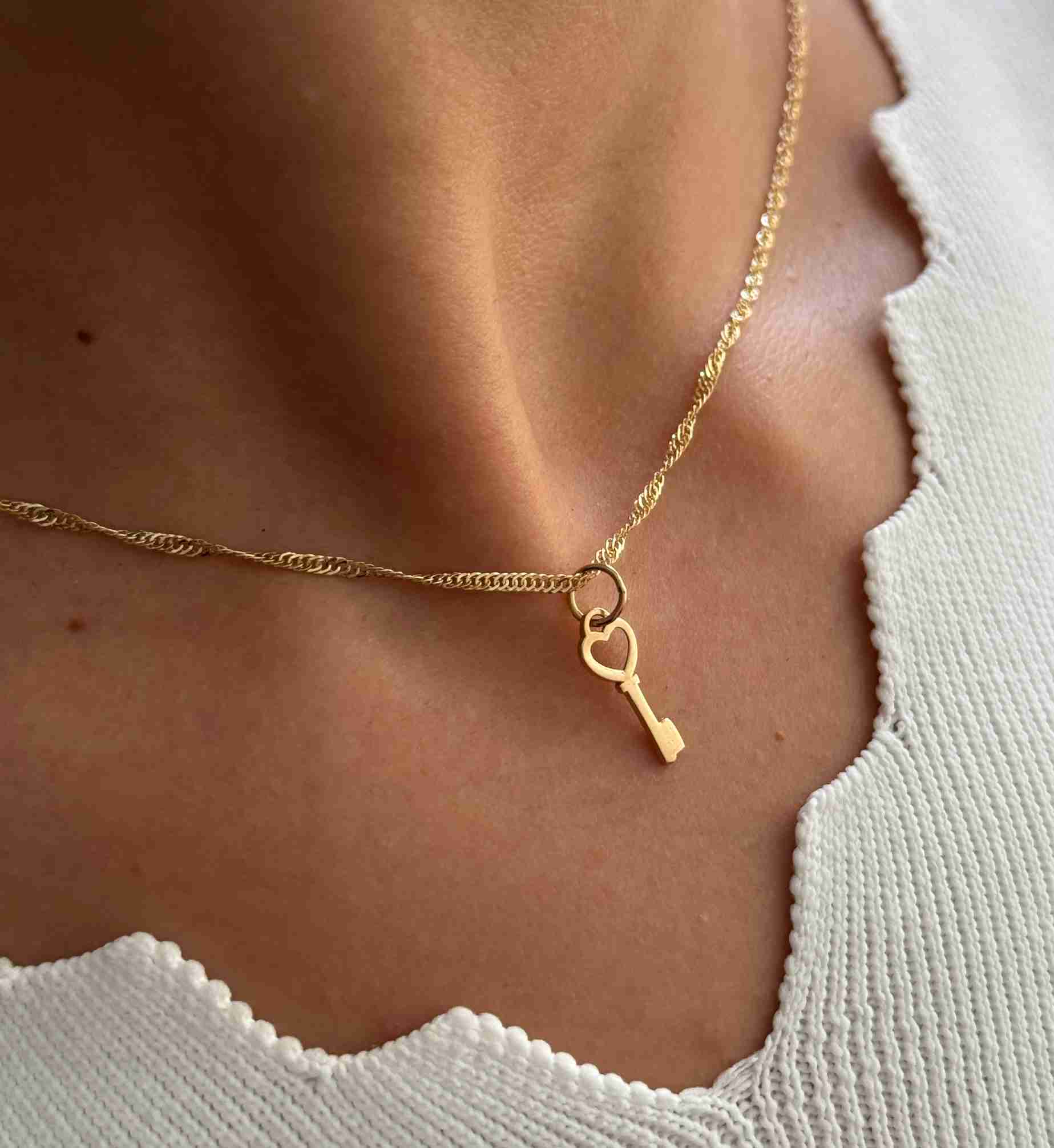 پلاک طلای کلید با طراحی لیزری، نمادی از قدرت، دانش و گشایش درهای جدید در زندگی است. این پلاک با جزئیات دقیق و برش های ظریف لیزری، جلوه ای مدرن و منحصر به فرد دارد. طراحی سبک و درخشش ملایم طلای بکار رفته در این اثر هنری زیبا، آن را به انتخابی ایده آل برای افرادی تبدیل کرده است که به دنبال زیورآلاتی نمادین با مفهوم عمیق هستند. این پلاک می تواند یادآور فرصت های جدید، موفقیت و دستیابی به اهداف باشد.