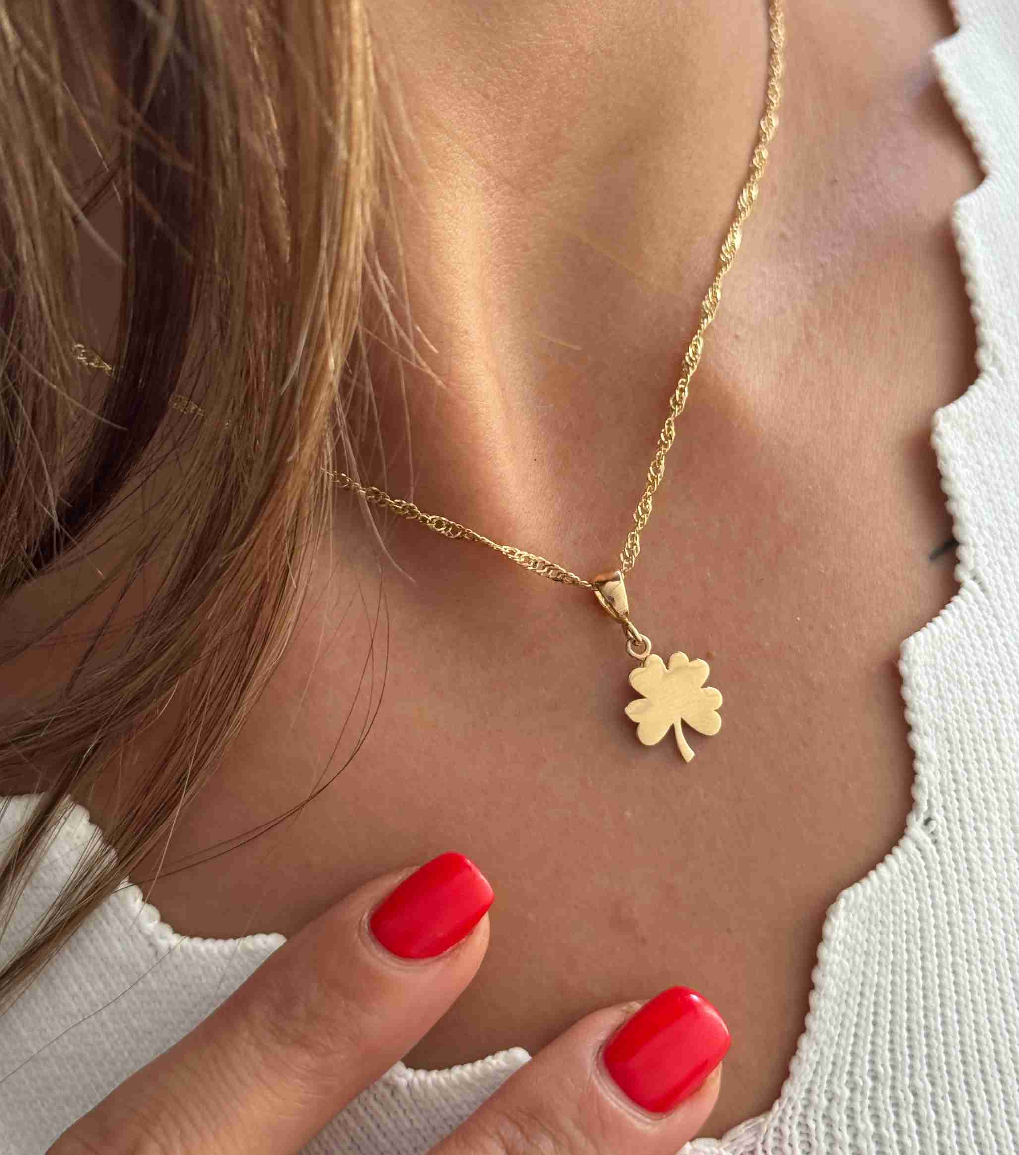 پلاک طلای طرح شبدر تو پر، نمادی از خوش شانسی، امید و سعادت است. طراحی ساده اما چشم نواز این پلاک، جلوه ای خاص و درخشان به استایل شما می بخشد. شبدر چهار برگ از گذشته تا امروز به عنوان سمبل خوشبختی و اقبال نیک شناخته شده و انتخابی ایده آل برای افرادی است گه به زیورآلاتی با معنا و زیبایی توأمان علاقه دارند. این اثر هنری جذاب، گزینه ای ایده آل برای استفاده روزمره و یا هدیه ای ارزشمند و خاص برای عزیزانتان است.