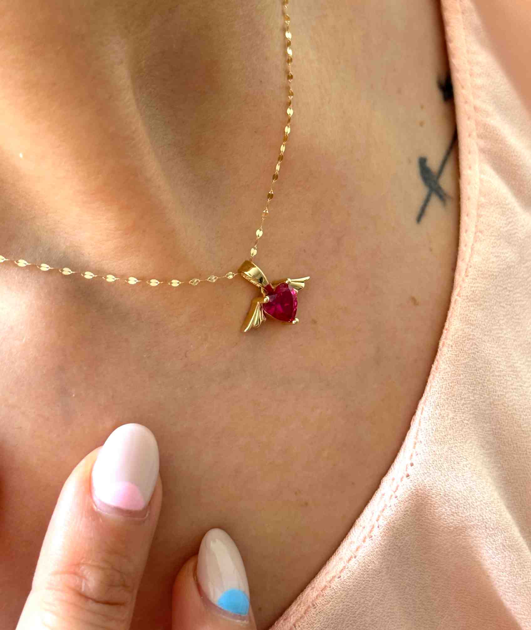 این قلب نماد عشق و احساسات عمیق است و با دو بال ظریف و هنرمندانه که در دو طرف آن قرار گرفتهاند، به پلاک جلوهای فرشتهگونه و رویایی میبخشد. ترکیب نگین سرخابی با طراحی بالها، این پلاک را به نمادی از عشق الهی و محبت بیپایان تبدیل میکند.