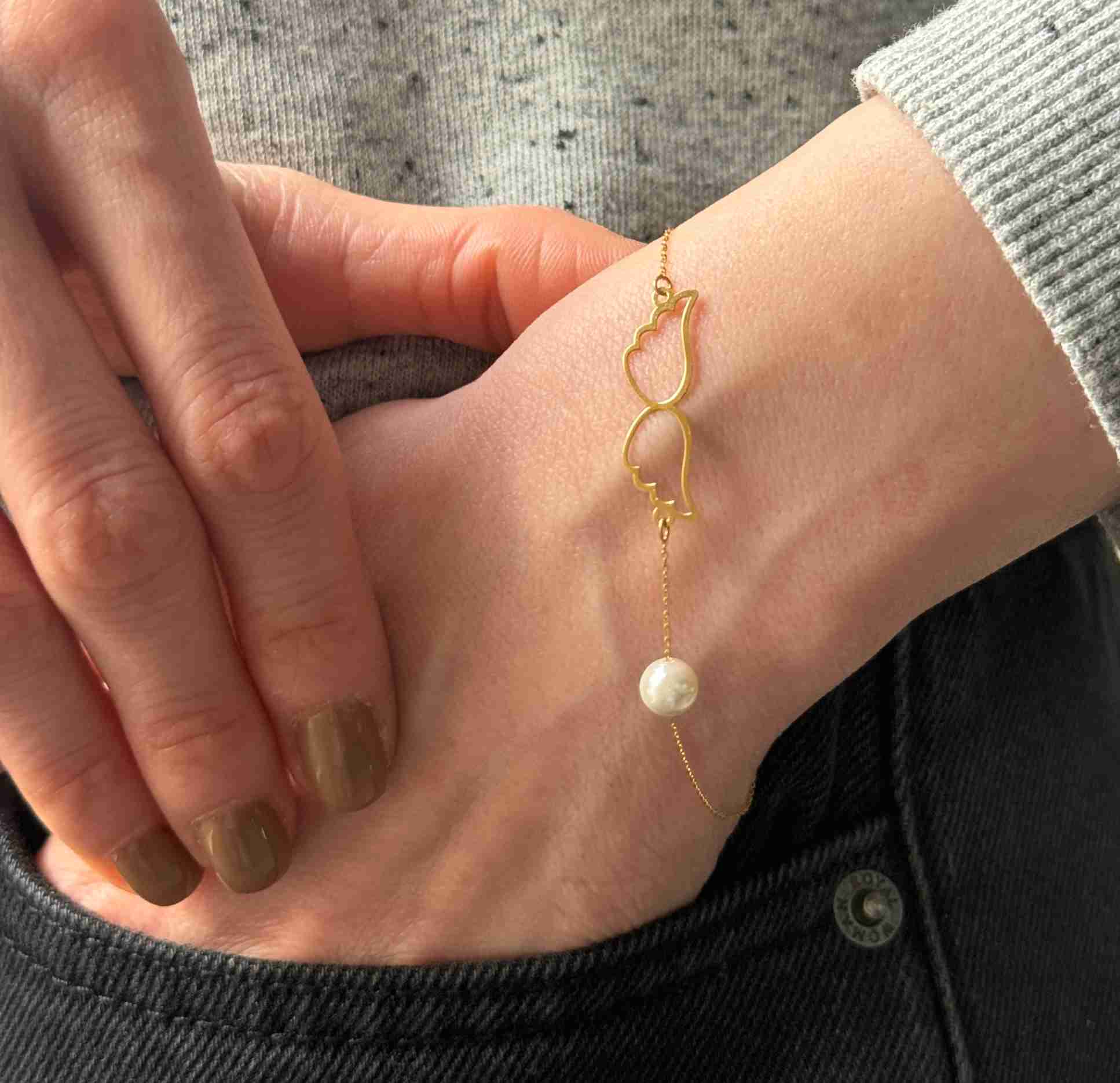 دست بند زنجیری دو بال فرشته و تک مروارید