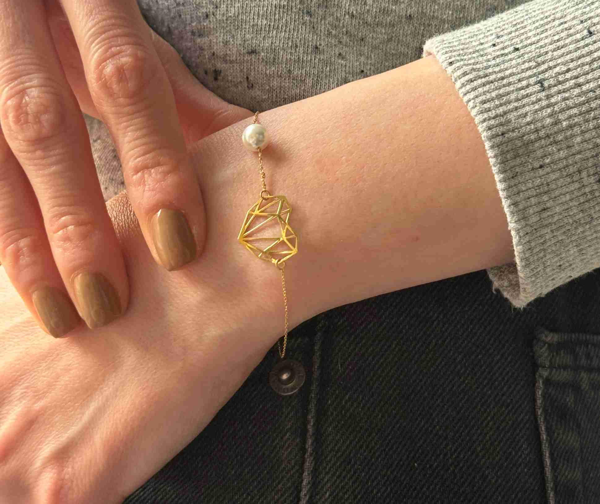 مشخصات دستبند “زنجیری قلب اوریگامی و تک مروارید“