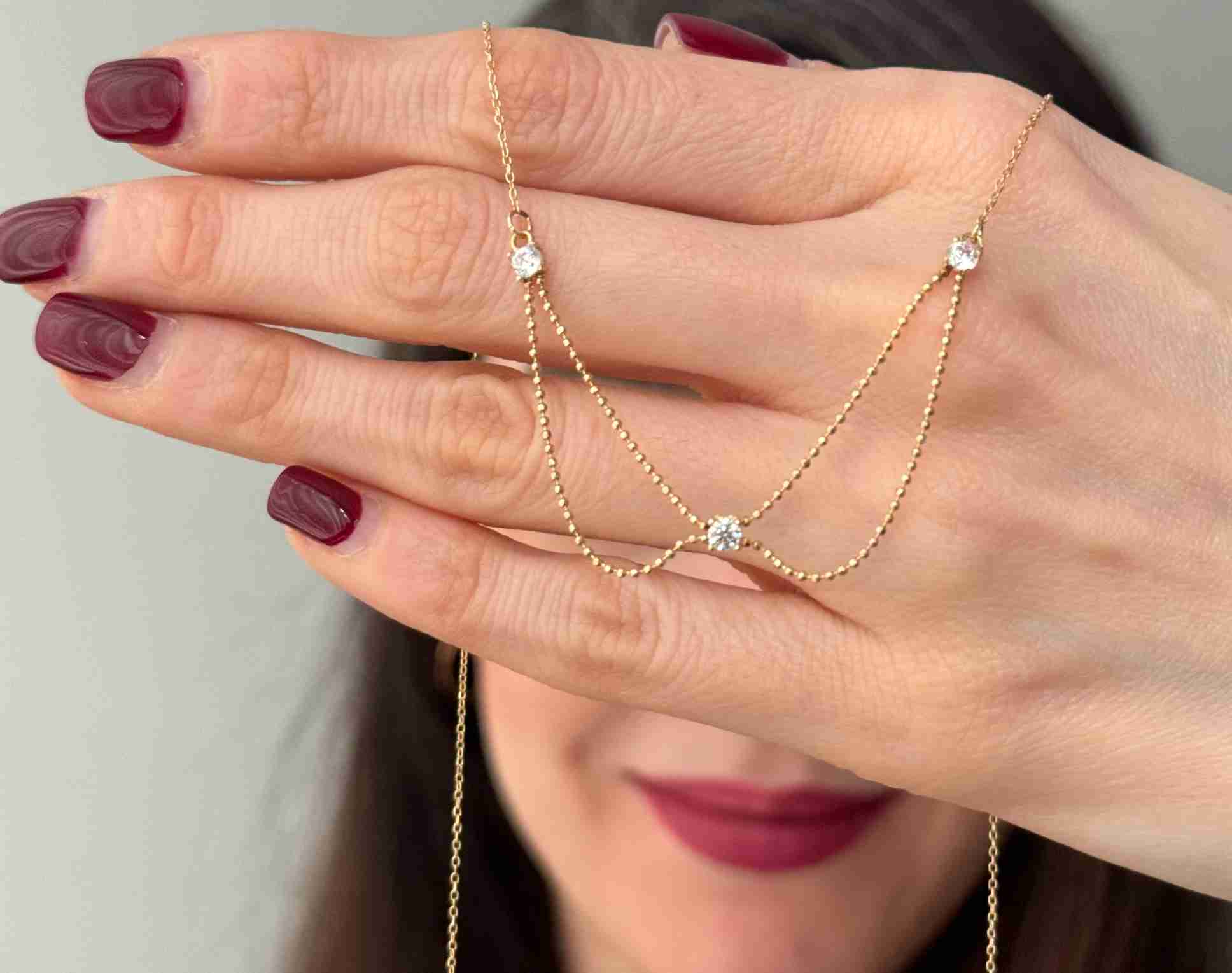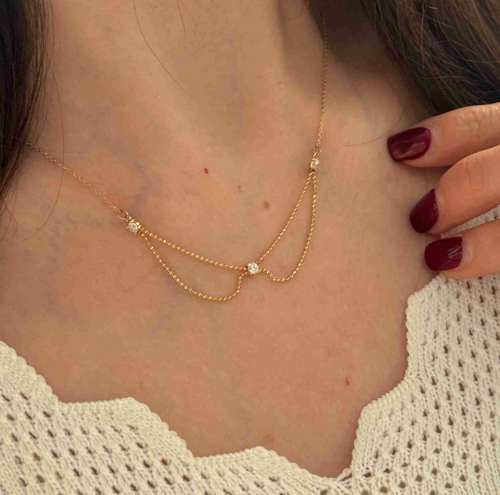 گردن بند زنجیر متصل زنجیر و سه نگین