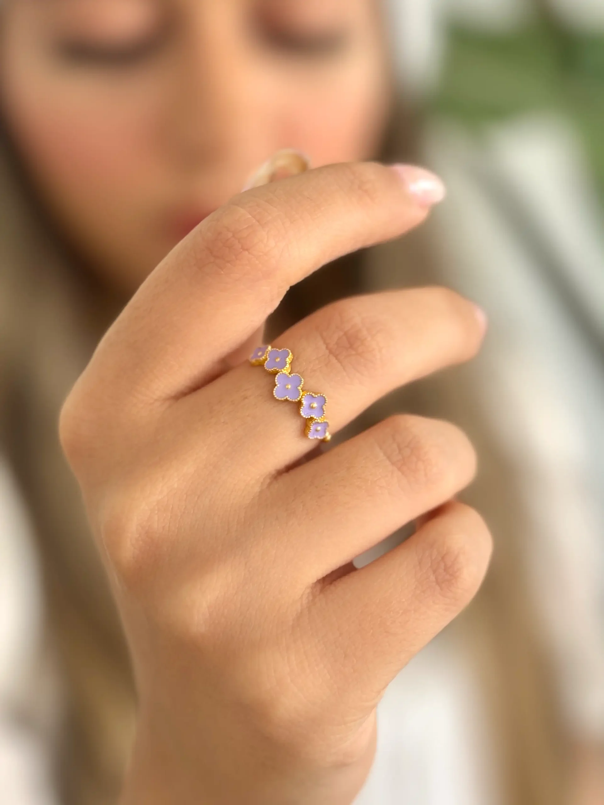 حلقه پنج گل ونکلیف بنفش مینا کاری