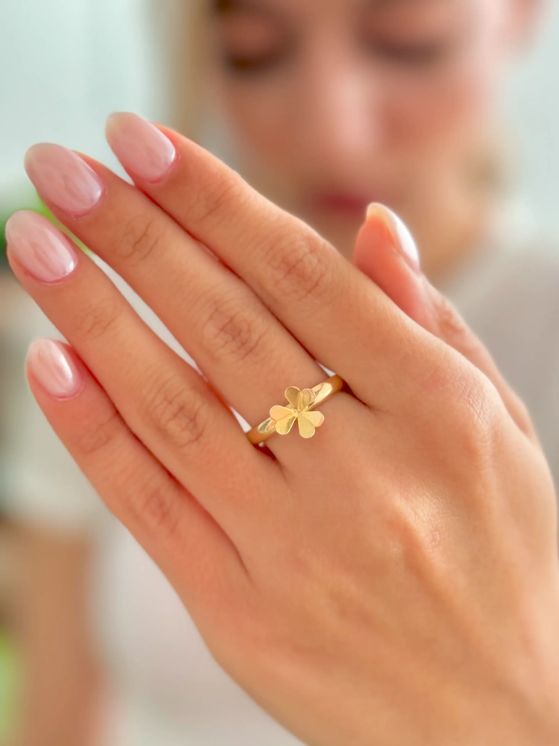 فرم ساده و شیک گل در کنار حلقهی براق، این انگشتر را به انتخابی عالی برای استفاده روزمره یا ستکردن با مدل های لطیف و مینیمال تبدیل کرده است.