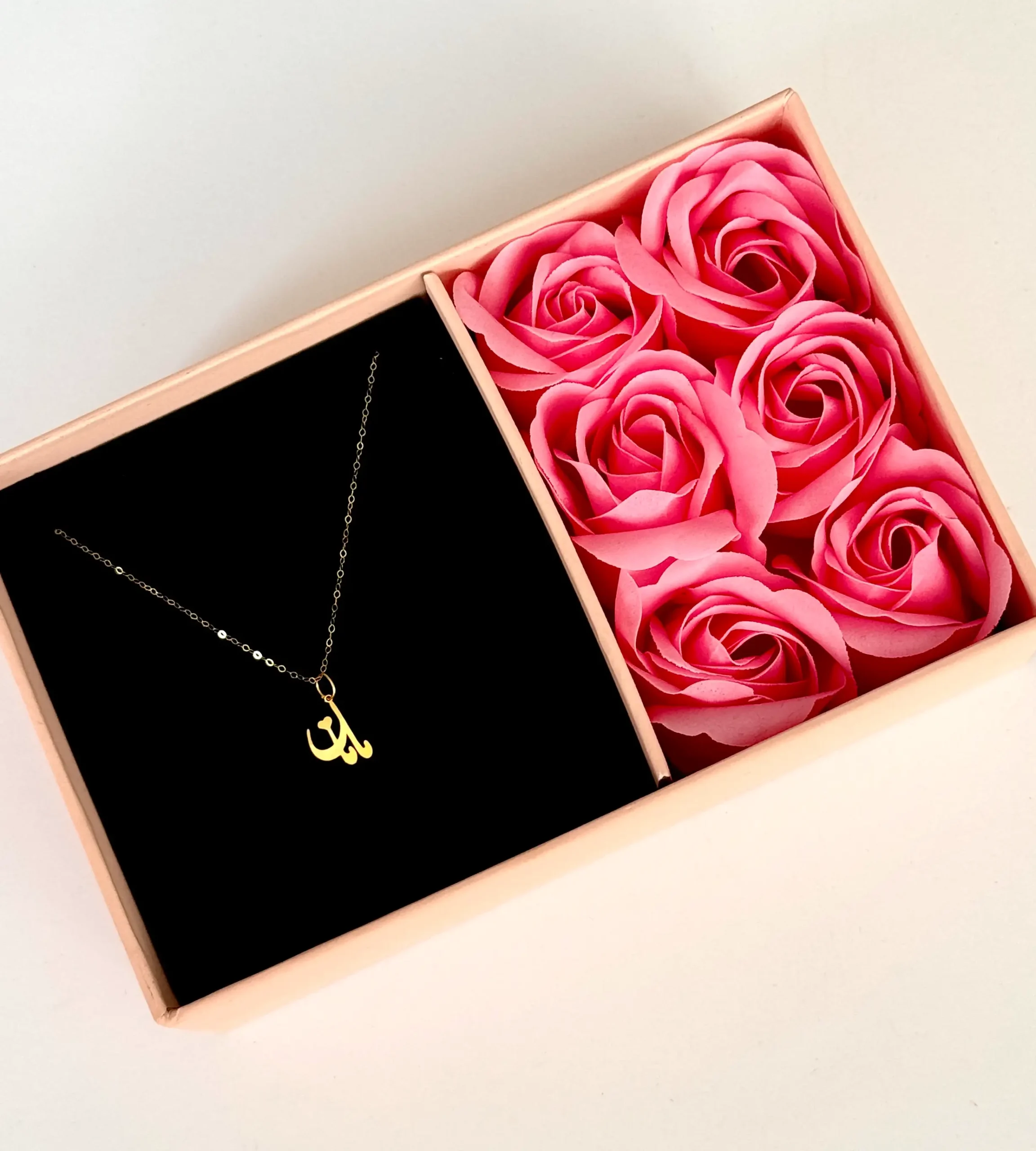 در این طراحی، بهجای نقطه حرف «ن»، یک قلب کوچک و ظریف قرار گرفته که نماد عشق مادرانه است. فرم پلاک به گونهای طراحی شده که هنگام قرار گرفتن روی گردن، به صورت مورب و زاویهدار مینشیند و حالتی خاص و متفاوت ایجاد میکند.