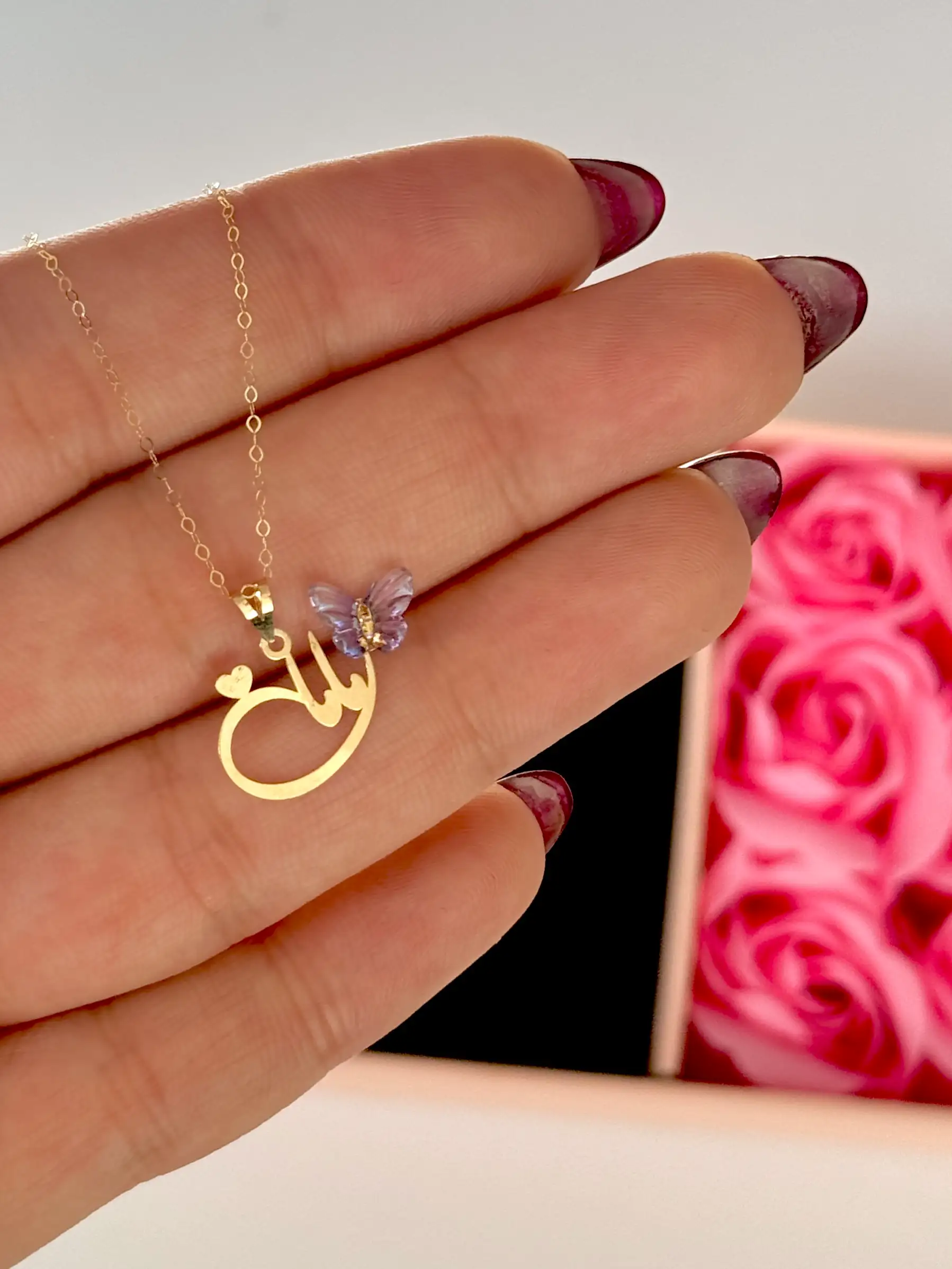 در انتهای این طراحی ظریف، یک پروانه بنفش از جنس رزین قرار گرفته که جلوهای لطیف و خاص به این مدل میبخشد. ترکیب طلا، قلب و پروانه سنگی، این مدل را به نمادی از عشق، زندگی و احساس مادرانه تبدیل کرده است.
