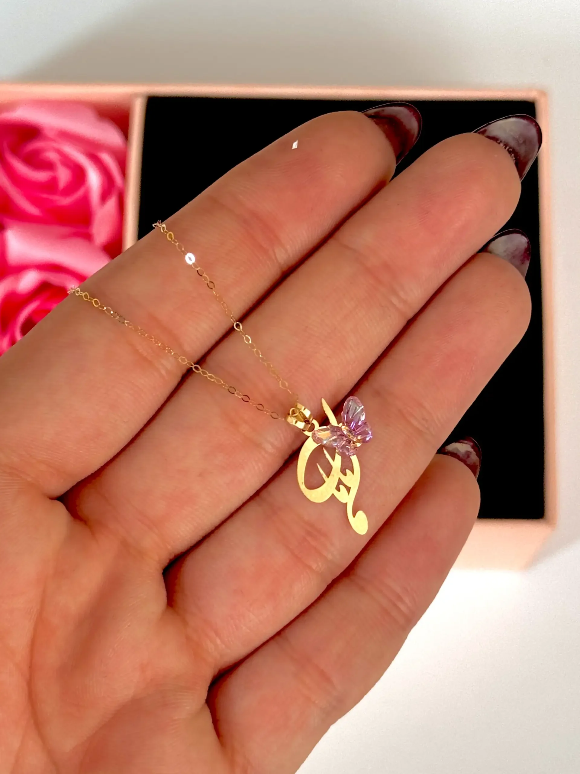 پلاک مامان نقطه پایین و پروانه سنگی صورتی