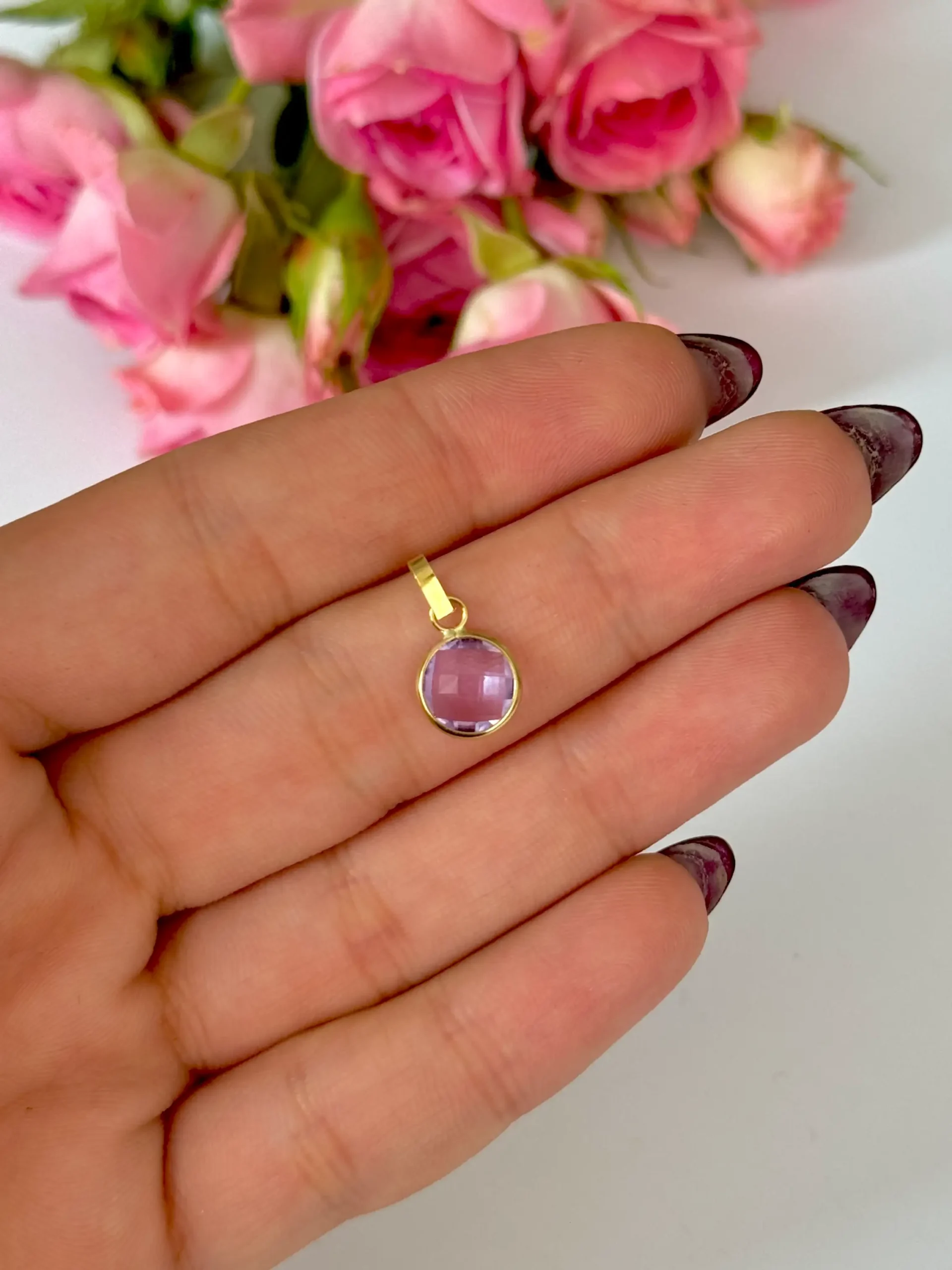 این آویز چشمنواز و مدرن از طلای ۱۸ عیار ساخته شده و ترکیبی از درخشش و ظرافت را به نمایش میگذارد. طراحی آن شامل یک نگین درخشان به رنگ بنفش روشن است که دارای تراشهای ظریف و مکعبی شکل میباشد و نور را به زیبایی بازتاب میدهد.