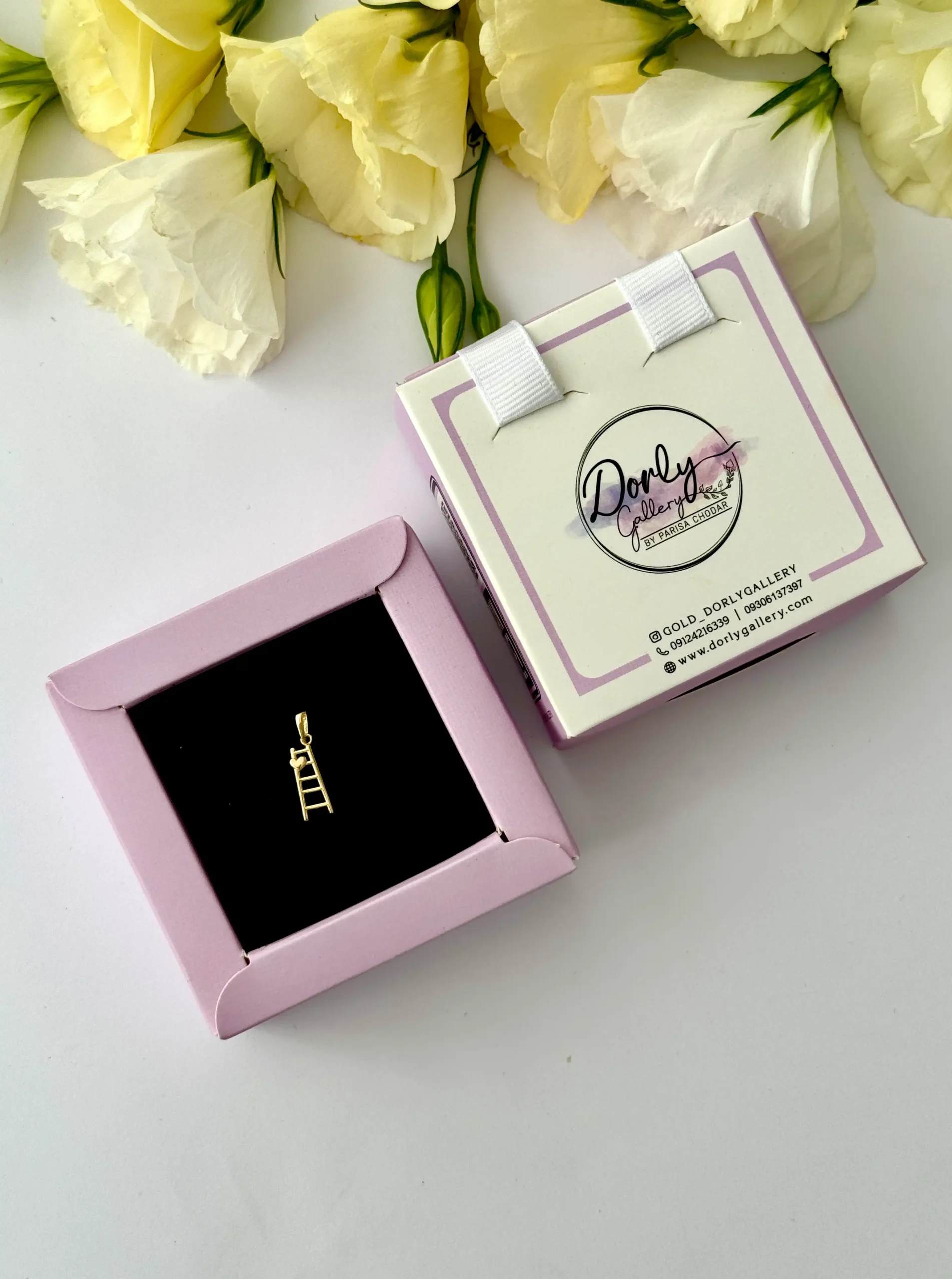 این آویز خاص و متفاوت از طلای ۱۸ عیار ساخته شده و طراحی آن بهصورت سهبعدی انجام شده است. طرح شامل یک نردبان طلایی است که نماد پیشرفت، تلاش و حرکت رو به بالاست و در گوشه آن یک قلب با سطحی صاف و صیقلی قرار گرفته که به زیبایی با نردبان ترکیب شده است.