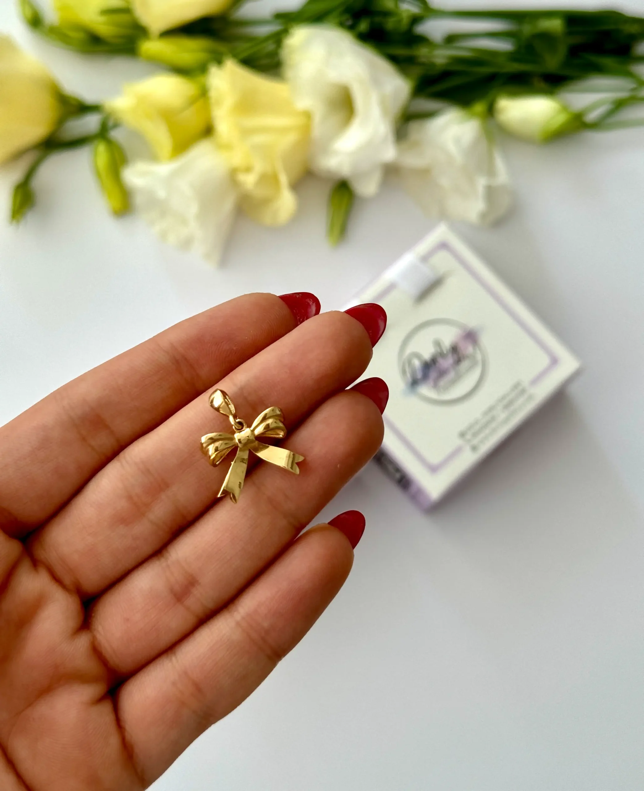 این آویز طلا به شکل یک پاپیون ظریف و زیبا از طلای ۱۸ عیار ساخته شده و با طراحی سهبعدی و حجمدار خود، جلوهای واقعی و زنده پیدا کرده است. خطوط نرم و انحناهای دقیق آن، حس لطافت پارچه را در قالب طلا تداعی میکند و انعکاس نور بر روی سطوح براقش، جلوهای لوکس و چشمنواز ایجاد میکند.