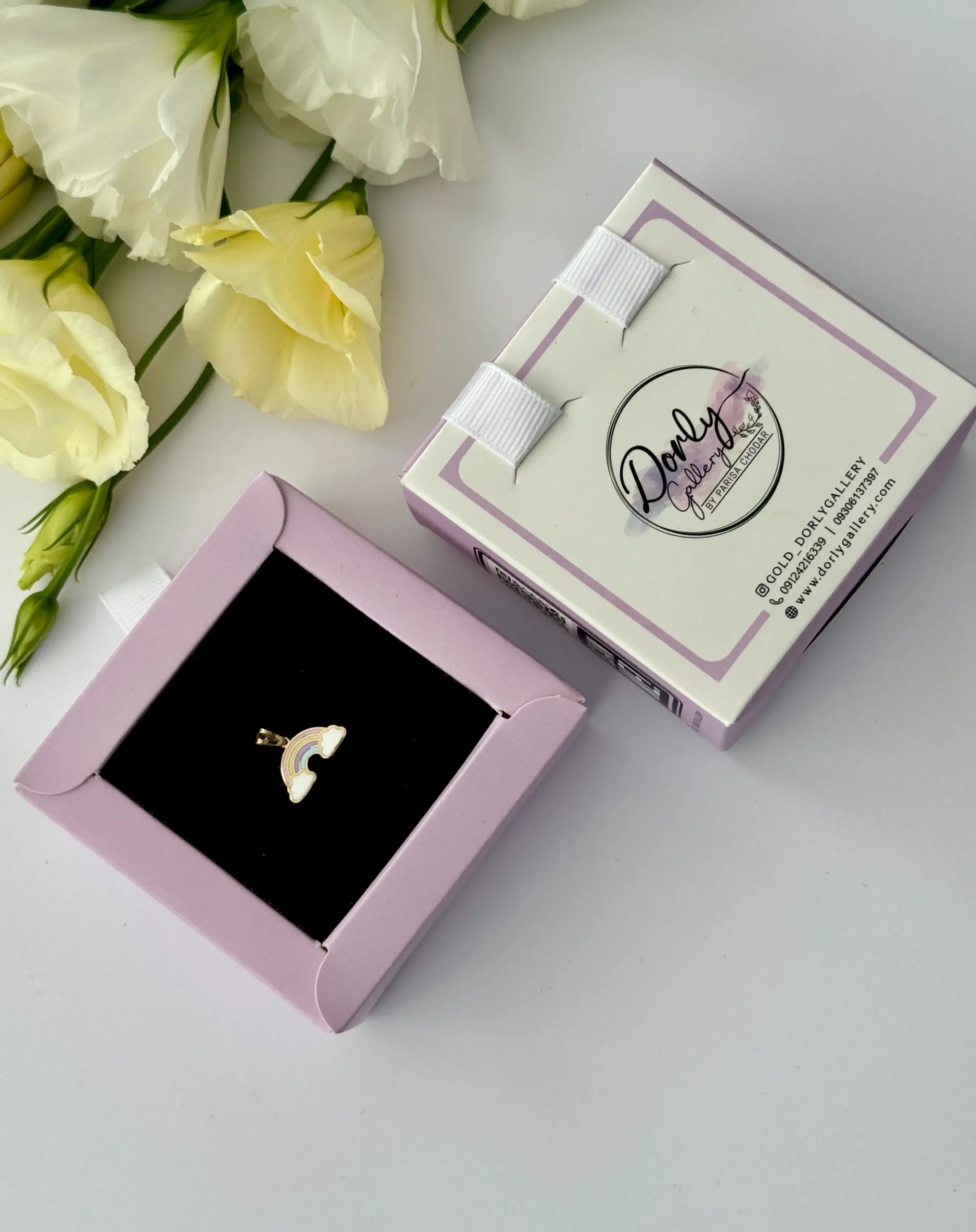 این آویز زیبا و منحصر به فرد از طلای 18 عیار ساخته شده و ترکیبی از هنر میناکاری و طراحی ظریف است. رنگین کمان با رنگهای پاستلی ملایم شامل صورتی روشن، لیمویی روشن، بنفش و آبی روشن میناکاری شده، جلوهای لطیف و دلنشین دارد که حس آرامش و شادی را به همراه دارد.