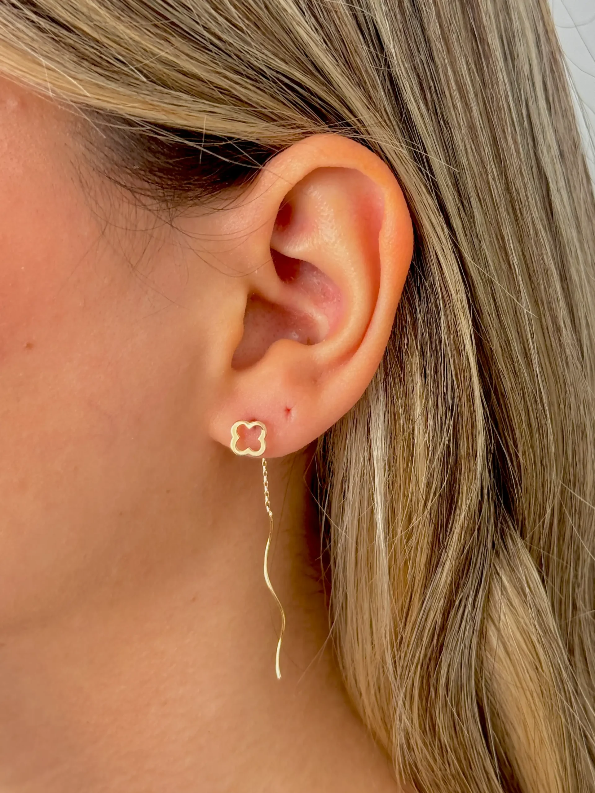 این گوشواره طلا بخیهای با طراحی موجی و الهامگرفته از سبک ونکلیف، جلوهای مدرن و در عین حال ظریف دارد. ساختار آن از طلای ۱۸ عیار ساخته شده و گل چهار پر ونکلیف به صورت توخالی و خطی طراحی شده است؛ همین موضوع باعث میشود گلگوش بسیار سبک، راحت و مناسب استفاده روزمره باشد.