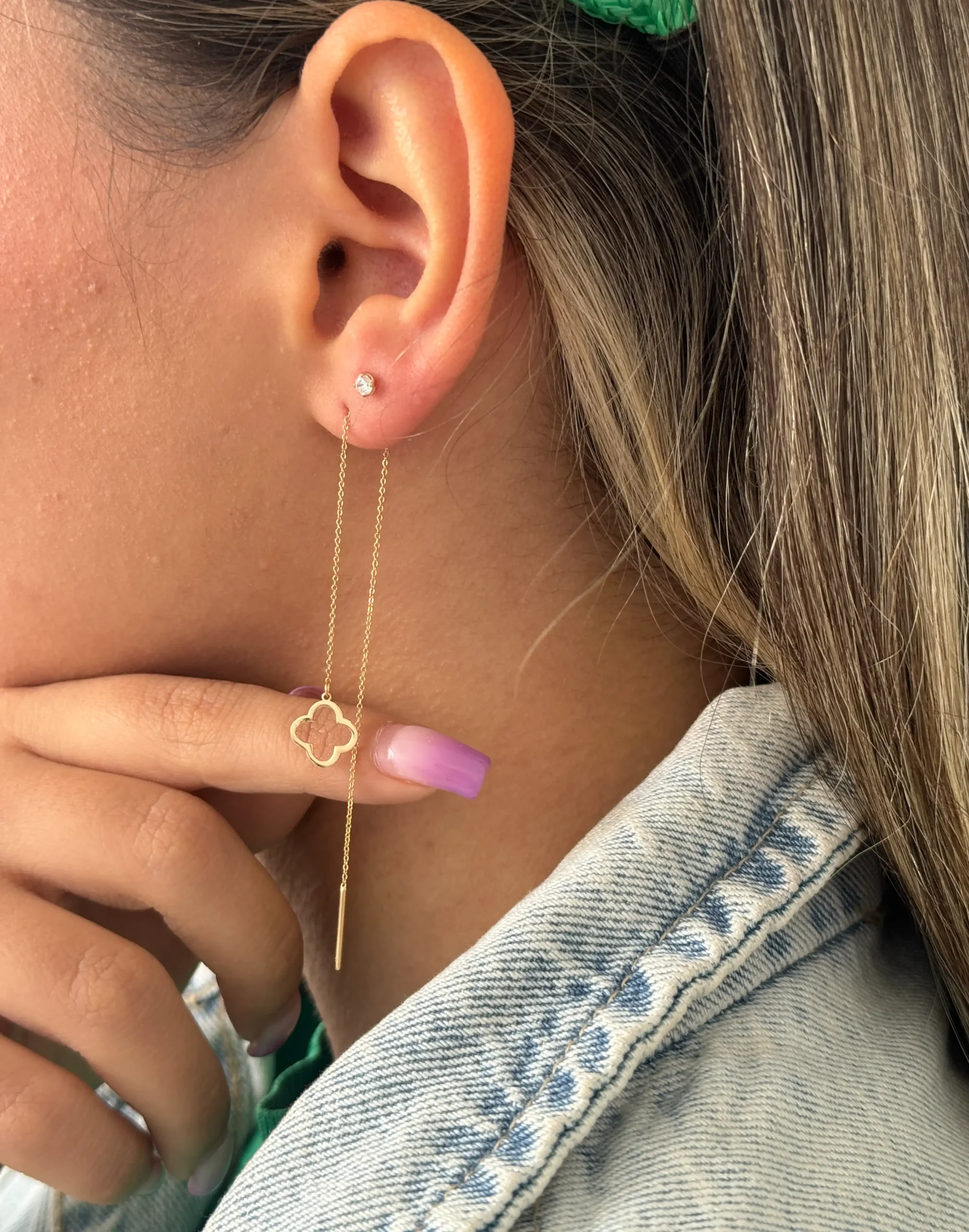 در این طراحی، یک زنجیر طلایی بسیار ظریف و سبک از بخش بالایی گلگوش آویزان شده که همانند یک خط لطیف در امتداد گوش قرار میگیرد. این زنجیر بهگونهای طراحی شده که ضمن داشتن استحکام، احساس سبکی و سیال بودن را القا کند و در حرکات سر یا باد، با نرمی حرکت کند.