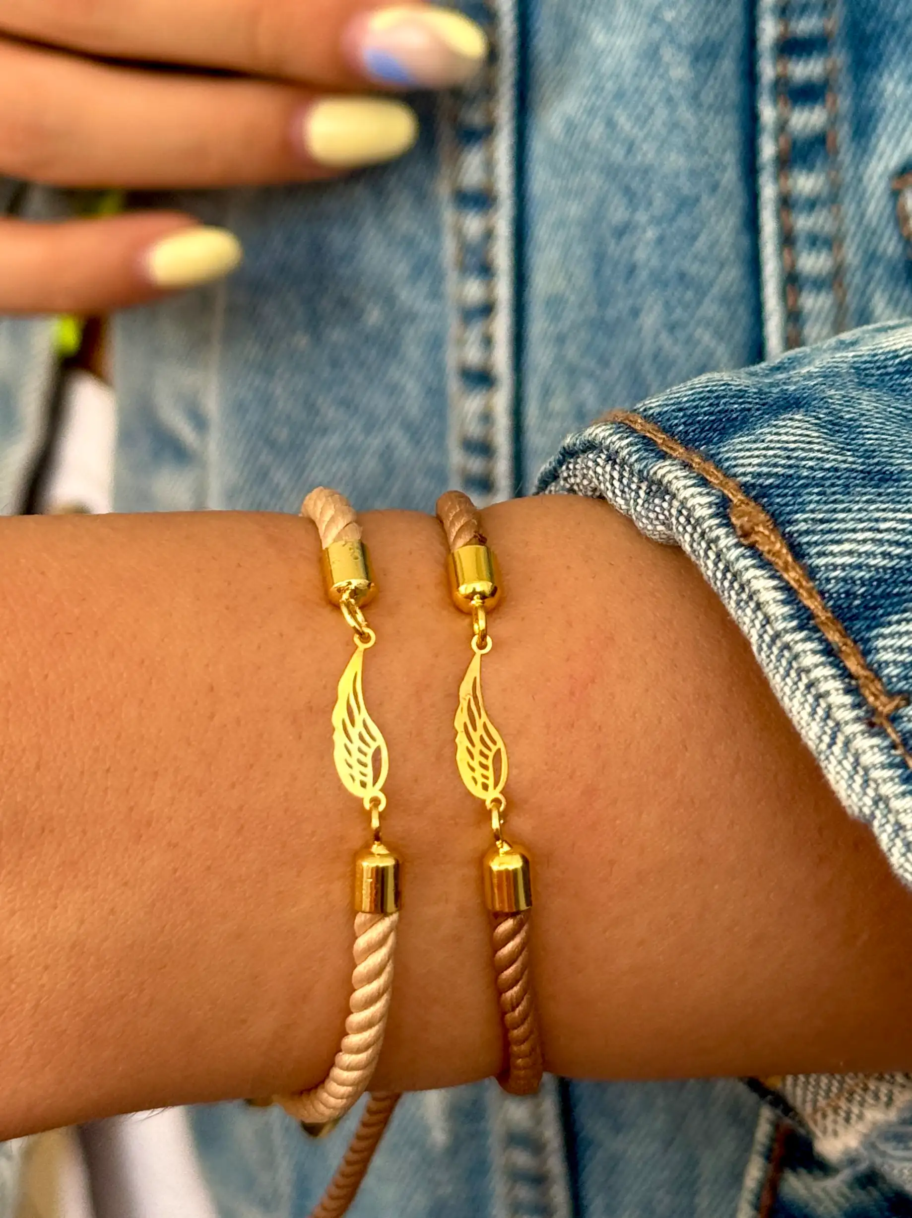 در مرکز بند، پلاک طلا به شکل تک بال فرشته قرار دارد که بهصورت لیزری و خطی طراحی شده است. ترکیب بند رنگی و طلای براق، این مدل را به انتخابی منحصربهفرد برای استایلهای روزمره و کژوال تبدیل کرده است.