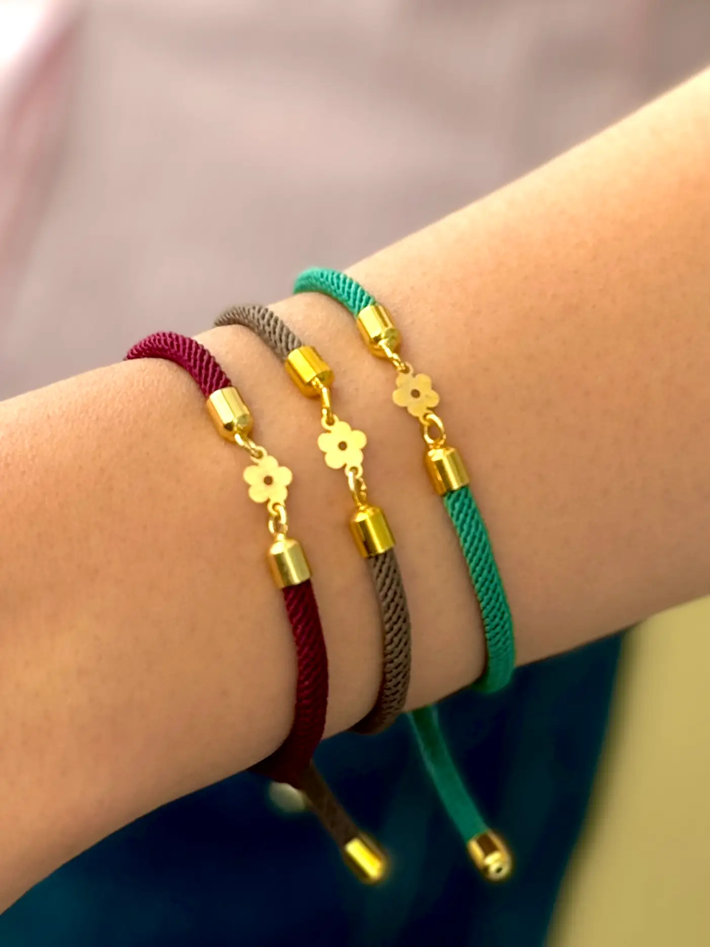 در مرکز بند، پلاک طرح گل پنج پر قرار گرفته که دارای سطحی براق و صیقلی است. ترکیب طلای درخشان با رنگبندی متنوع بند، این مدل را به گزینهای محبوب برای استفاده روزمره و هدیه تبدیل کرده است.