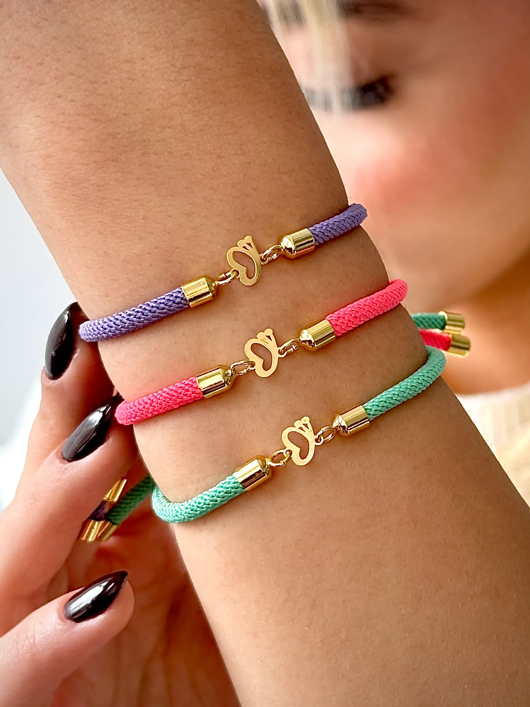 این دستبند بند رنگی با طراحی ظریف و فانتزی، جلوهای لطیف و دخترانه دارد. در مرکز دست بند،پلاک پروانهای نیمه با طراحی خطی، توخالی از طلای ۱۸ عیار قرار گرفته که نمادی از آزادی، لطافت و زیبایی است. بند این مدل قابل سایز شدن بوده و بهراحتی با اندازههای مختلف مچ دست هماهنگ میشود. همچنین تنوع بالای رنگبندی بندها، امکان انتخاب مطابق با سلیقههای مختلف و ست کردن با استایلهای روزمره را فراهم میکند.