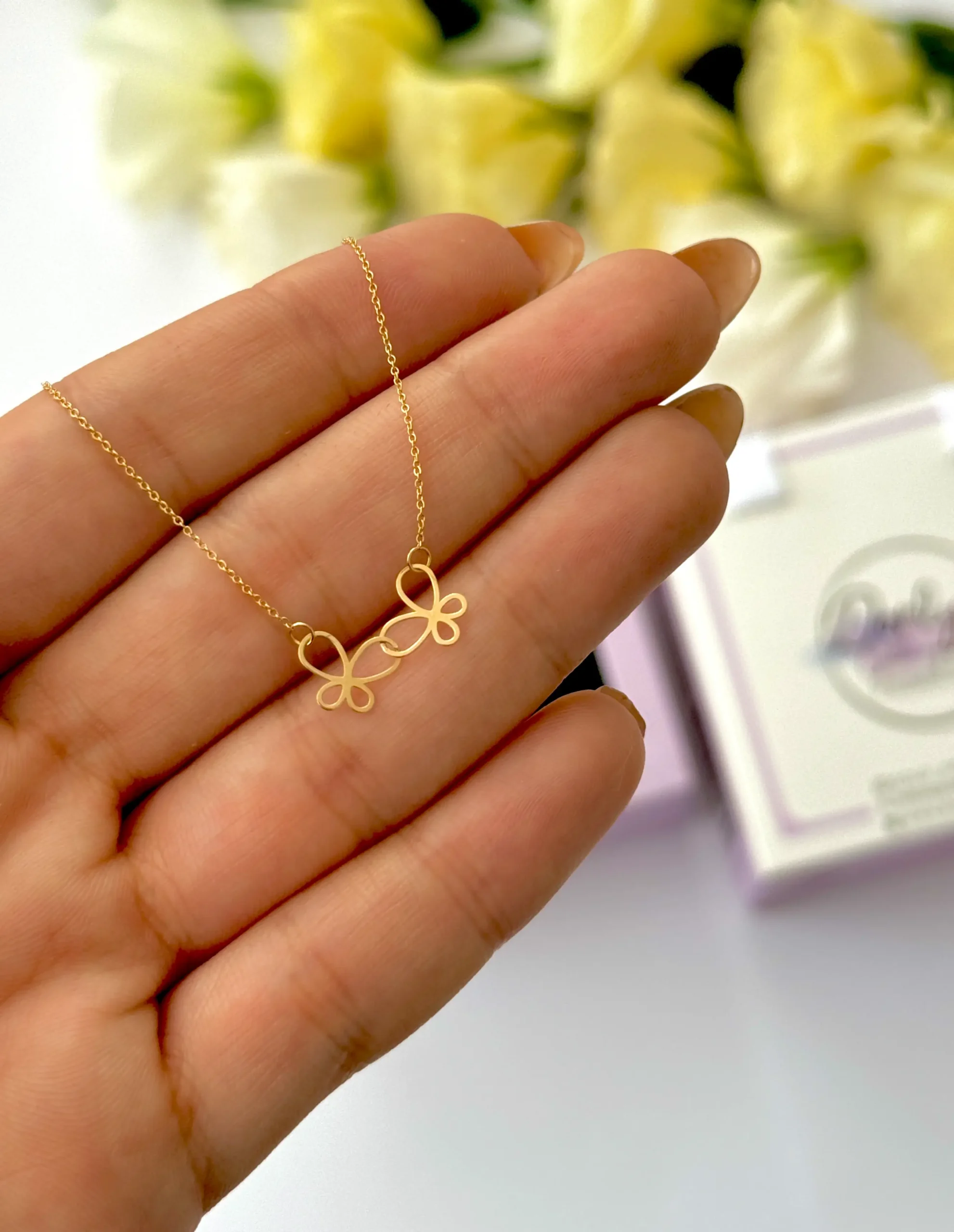 گردن بند زنجیر متصل دو پروانه تو هم