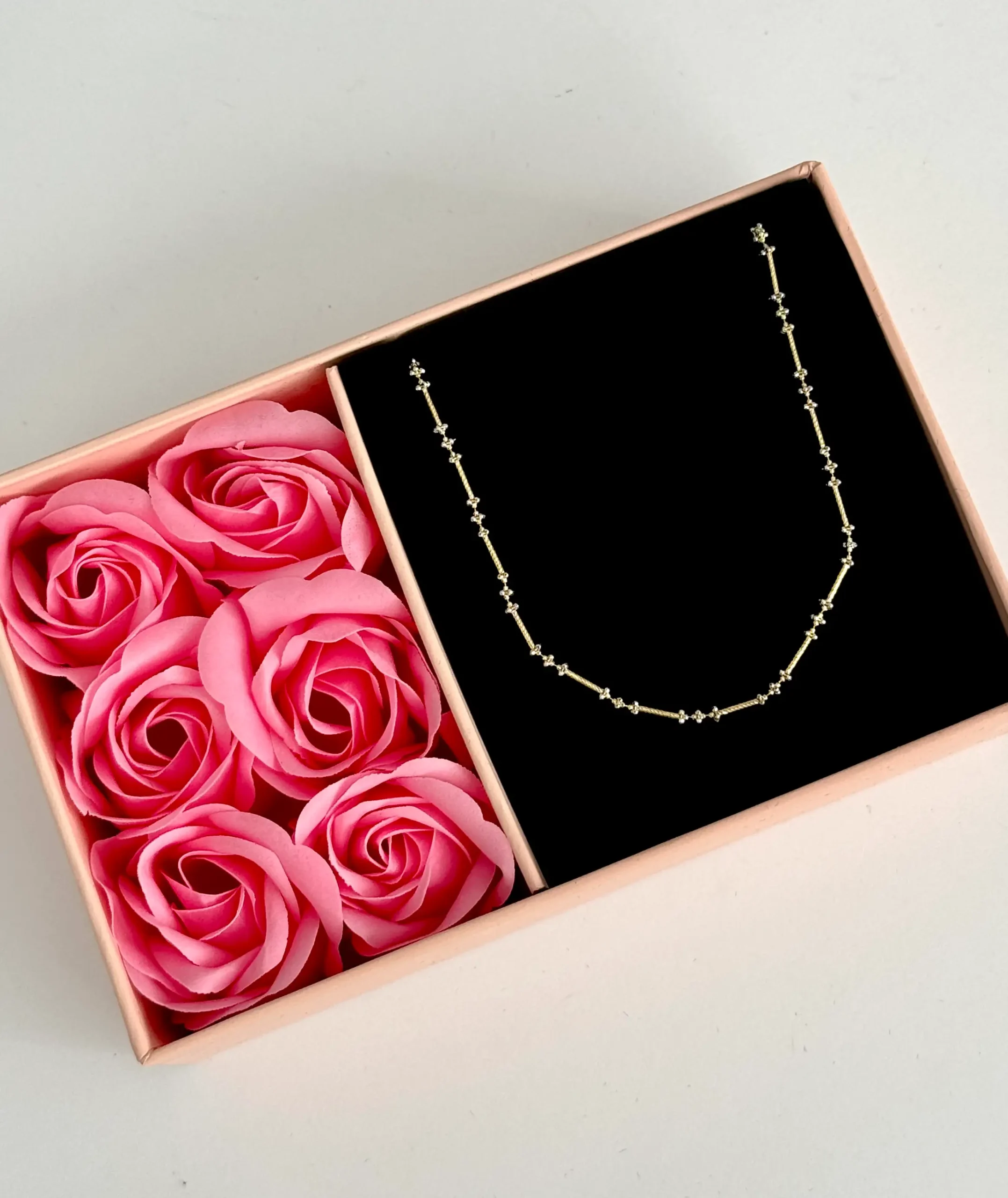 طراحی مولکولی باکسی و فرم زنجیر متصل، باعث میشود گردنبند بهصورت منظم و یکدست روی گردن قرار گیرد و درخشش دو رنگ طلا در کنار هم، جلوهای مدرن و در عین حال کلاسیک ایجاد کند.