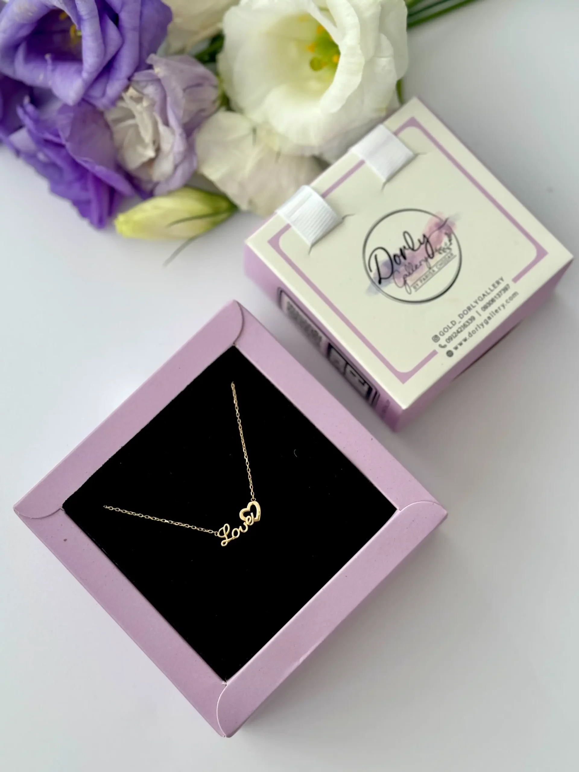 در انتهای کلمه، یک قلب توخالی و خطی ظریف قرار گرفته که تکمیلکننده پیام عاشقانه گردنبند است و طراحی را به شکلی هنرمندانه و متعادل پایان میدهد.