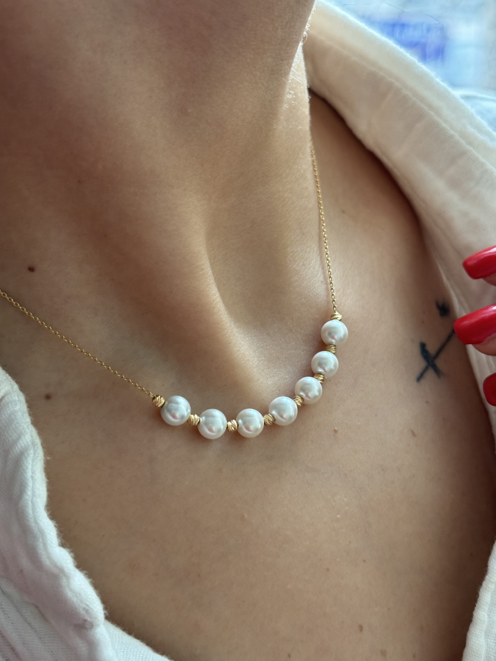 گردن بند زنجیر متصل هفت مروارید و گوی البرنادو