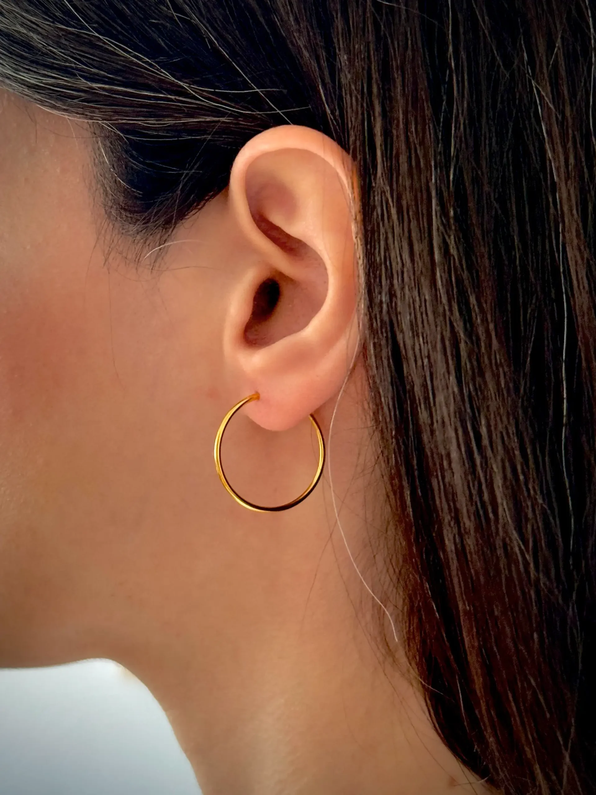 گوشواره طلا حلقهای ساده، نمونهای کلاسیک و همیشهمد روز از زیورآلات است که با طراحی مینیمال و فرمی دایرهای، جلوهای ظریف، شیک و بیزمان دارد. این مدل از طلای ۱۸ عیار ساخته شده و با سطحی براق و صیقلی، بهراحتی با هر سبک و استایلی هماهنگ میشود.