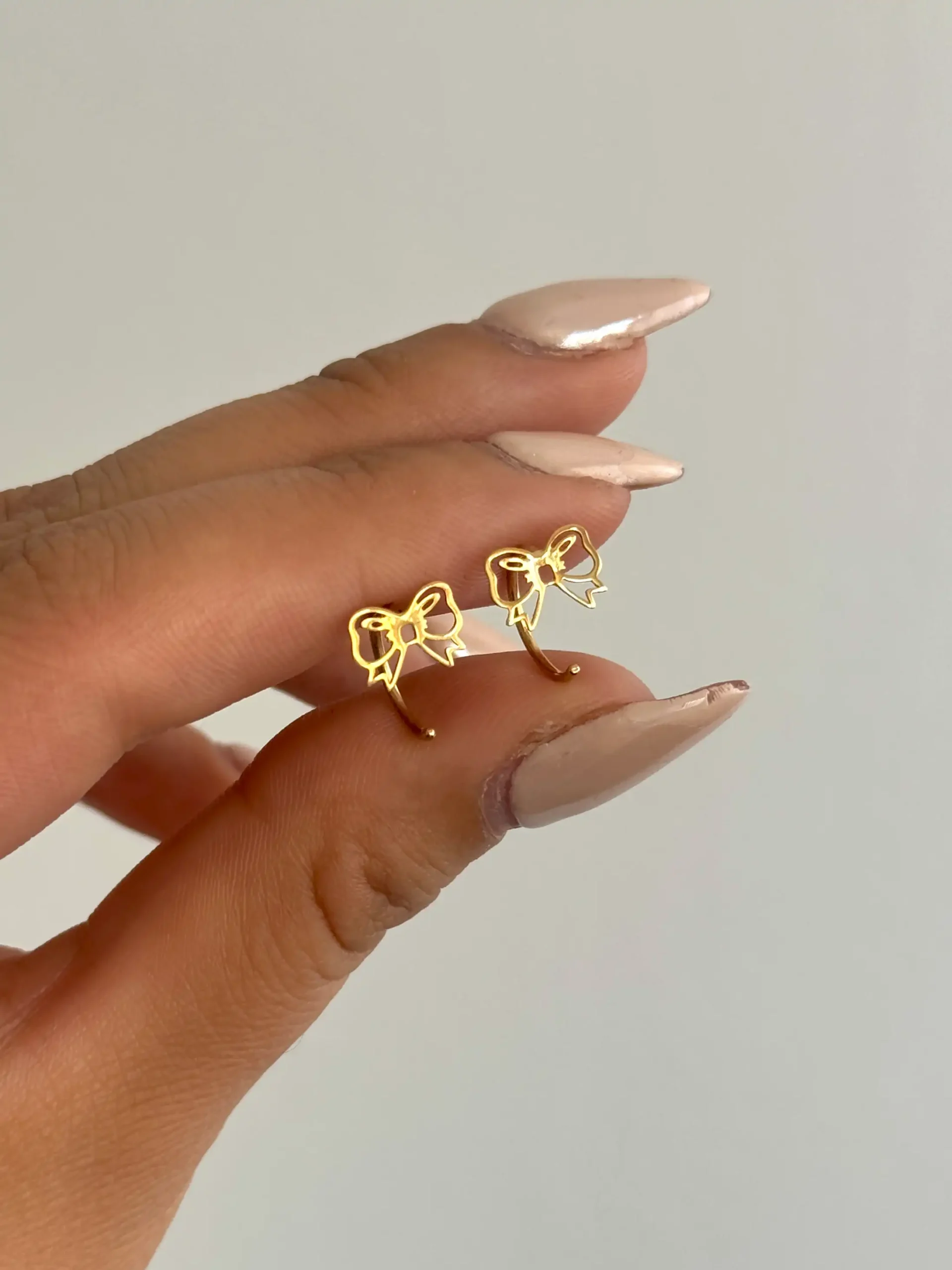 این گوشواره زیبا از طلای ۱۸ عیار ساخته شده و طراحی آن به صورت پاپیون توخالی و خطی است که جلوهای سبک و ظریف به گلگوش داده و سطح آن براق و صیقلی است که نور را به زیبایی بازتاب میدهد.