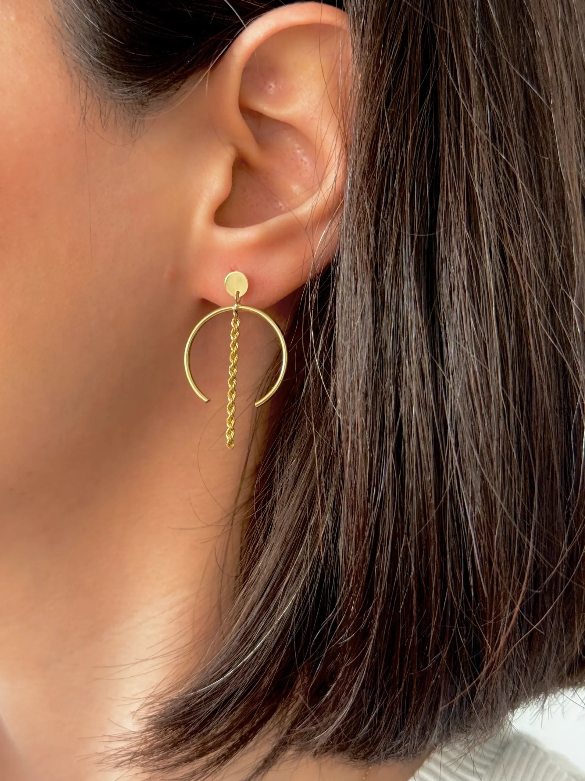 مشخصات گوشواره ” میخی پولک هلال و زنجیر طنابی آویز “