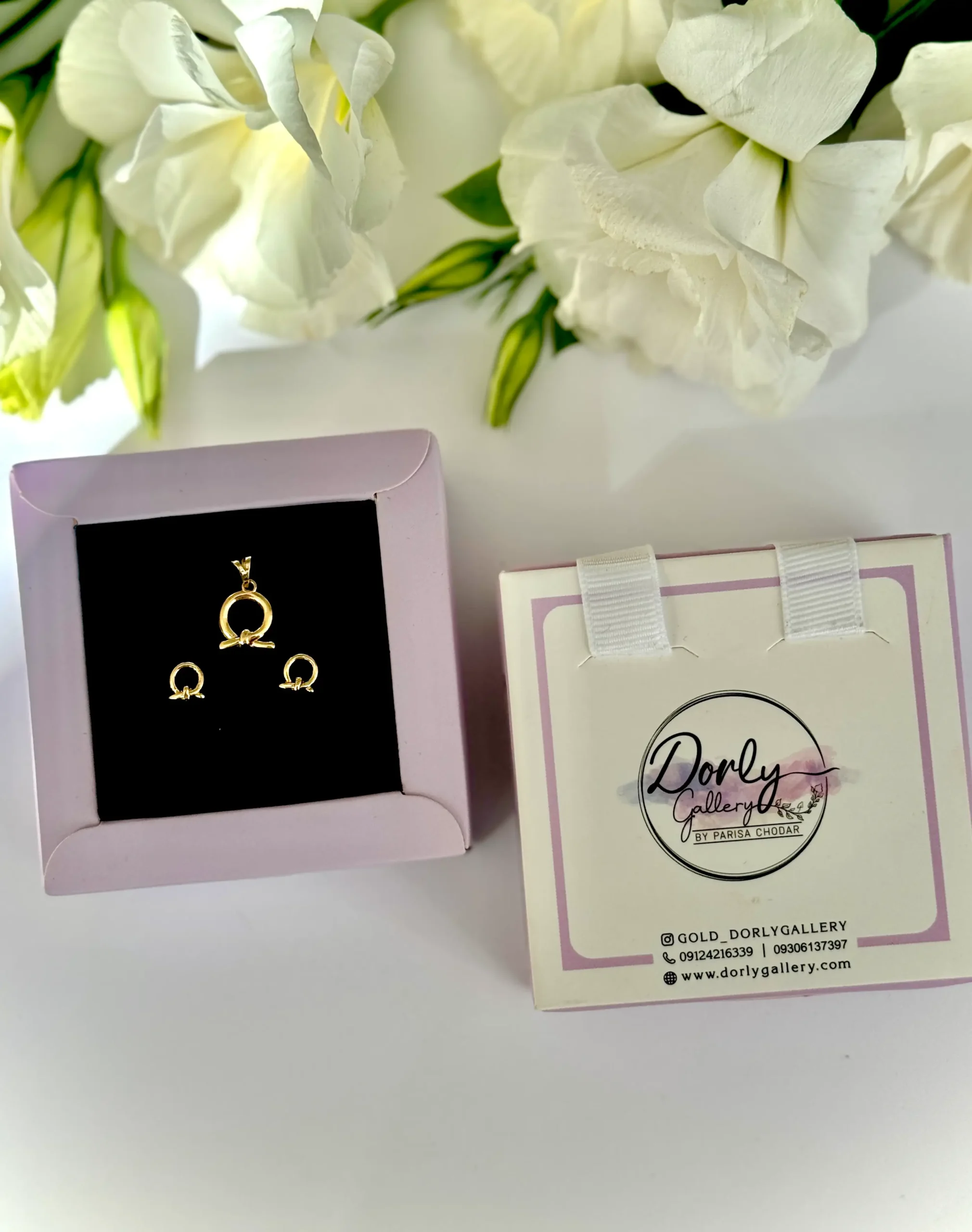 این نیمست ظریف و خاص از طلای ۱۸ عیار ساخته شده و شامل یک پلاک و یک جفت گوشواره میخی است. طراحی مجموعه بر پایهی حلقهای دایرهای شکل است که بهصورت خطی و توخالی کار شده و در بخش پایینی آن، گرهای سهبعدی و چشمنواز قرار دارد.