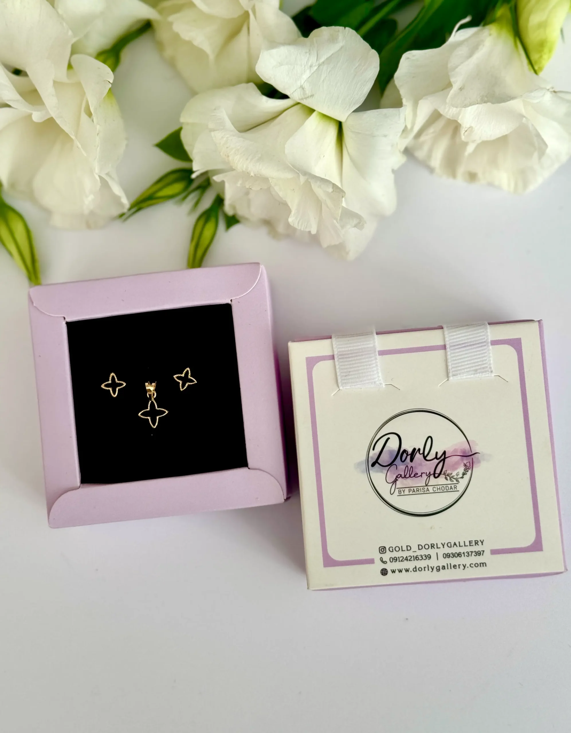 این مدل شامل: یک پلاک و یک جفت گوشواره میخی است.