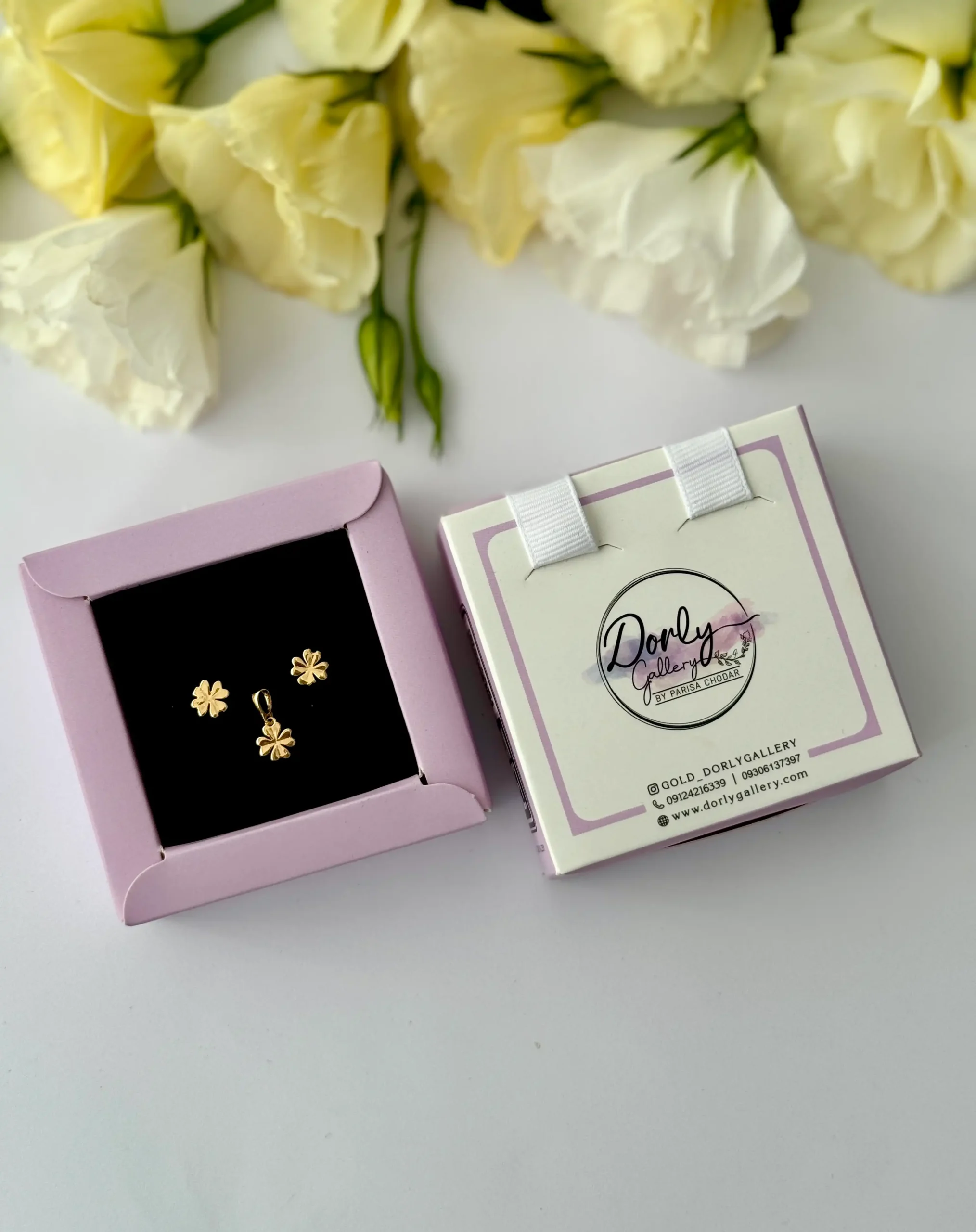 این مدل شامل: یک پلاک و یک جفت گوشواره میخی است.