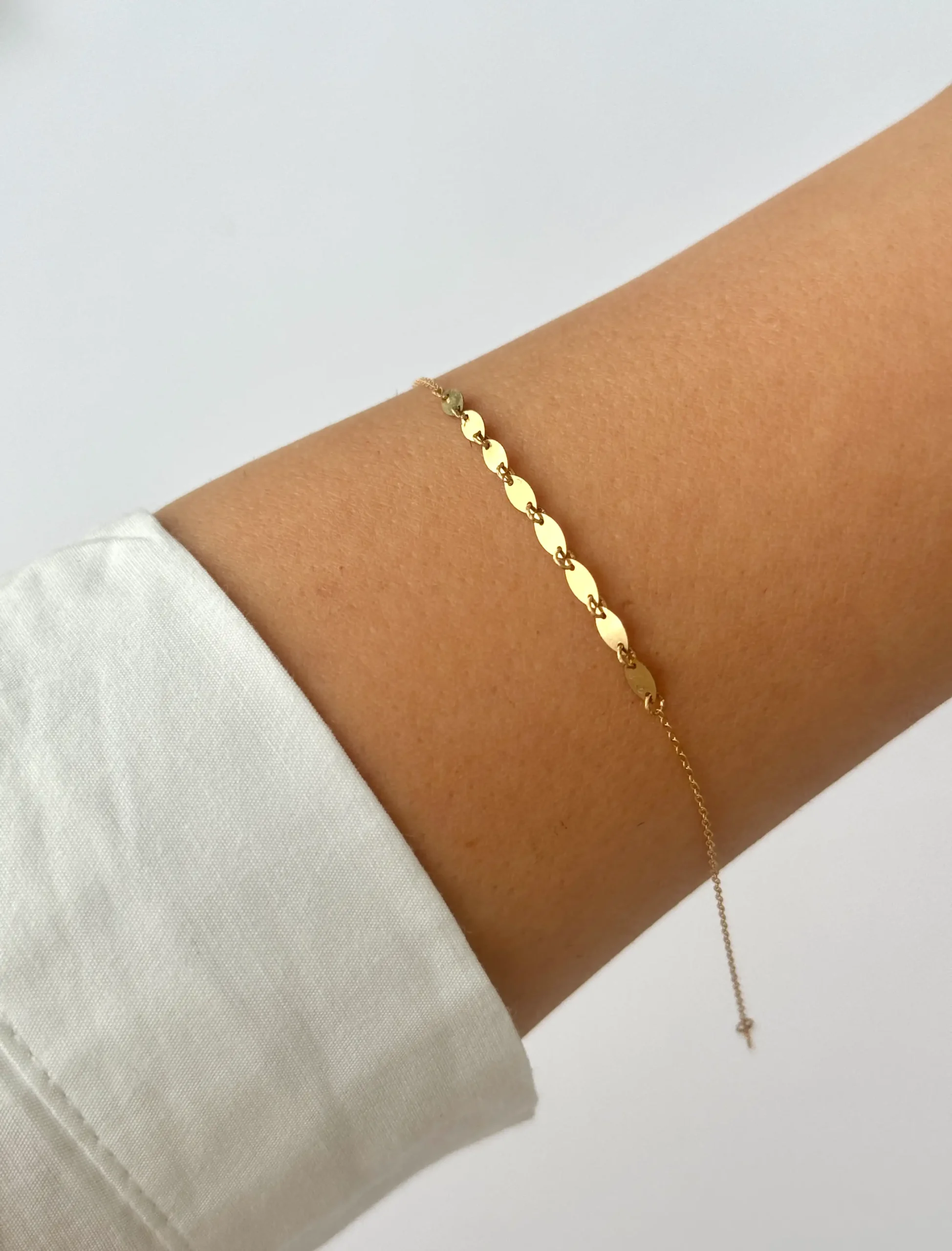 ترکیب ظرافت زنجیر و درخشش پولکها، این دستبند را به گزینهای ایدهآل برای استایلهای روزمره یا رسمی تبدیل کرده است.